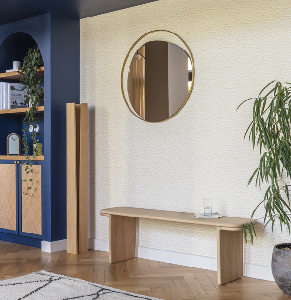 Ses lignes courbes créent une présence douce et accueillante, faisant de ce banc une pièce à la fois fonctionnelle et décorative.