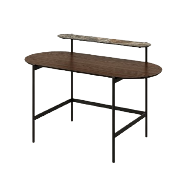 Ce bureau joue sur l’association ludique de matériaux : bois plaqué et céramique se combinent pour créer un meuble unique. Vous pouvez choisir un plateau en bois avec le second niveau en céramique, ou inverser les matériaux, pour un rendu distinctif et personnalisé qui reflète votre style.