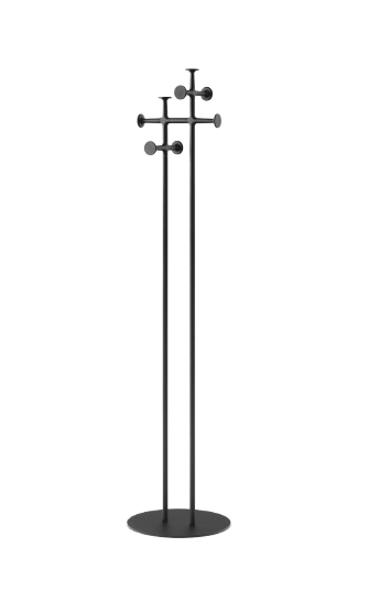 Composé d’une base en acier thermolaqué et de deux mâts soutenant huit crochets, le porte‑manteau Afteroom assure un rangement pratique et organisé.
