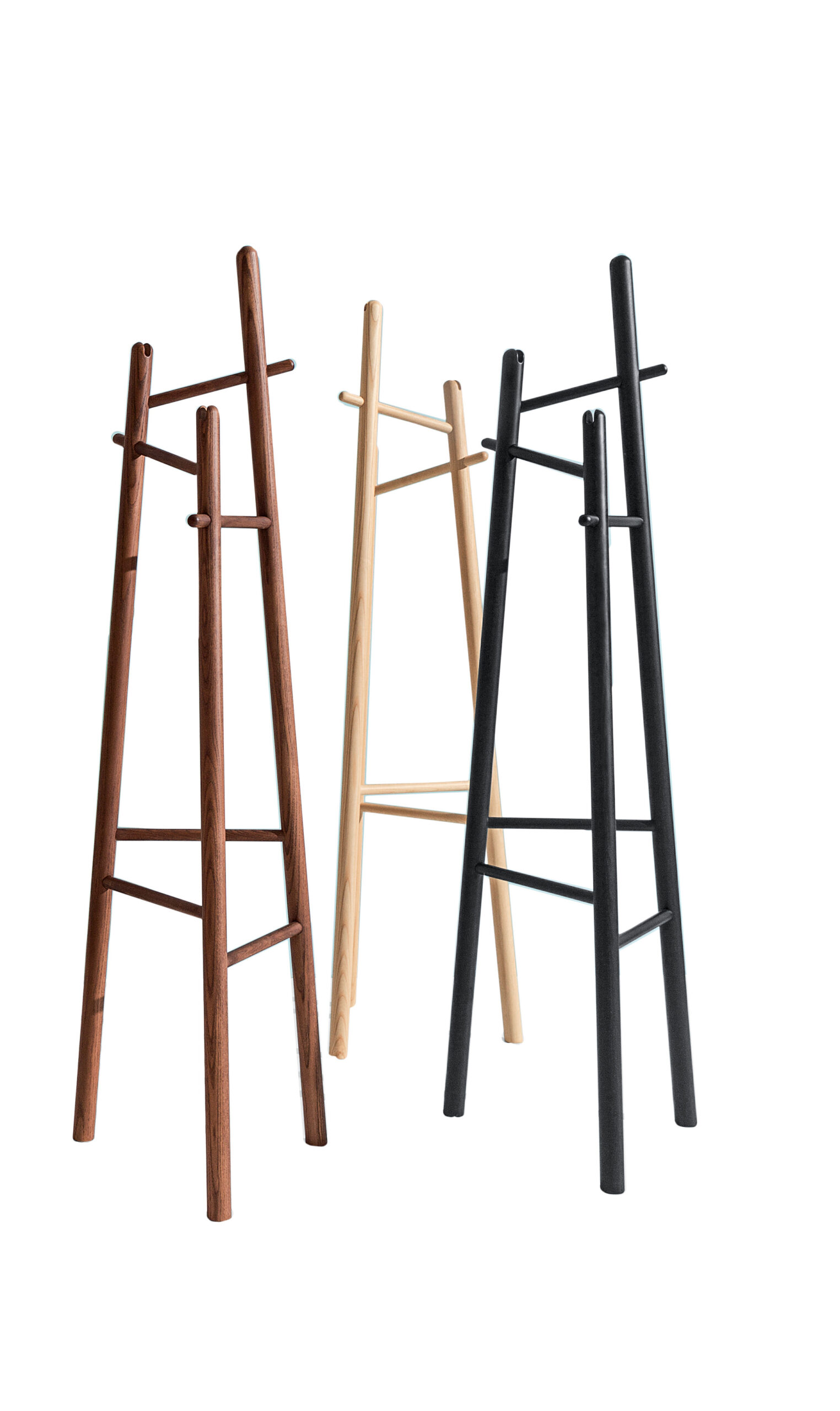 Fabriqué en bois massif, Sakti est disponible en frêne naturel, teinté noir ou teinté noyer, offrant une finition chaleureuse et raffinée. Ses lignes épurées et ses emplacements fonctionnels pour crochets et cintres allient praticité et esthétisme, permettant de suspendre vêtements, sacs ou accessoires avec organisation et élégance.
