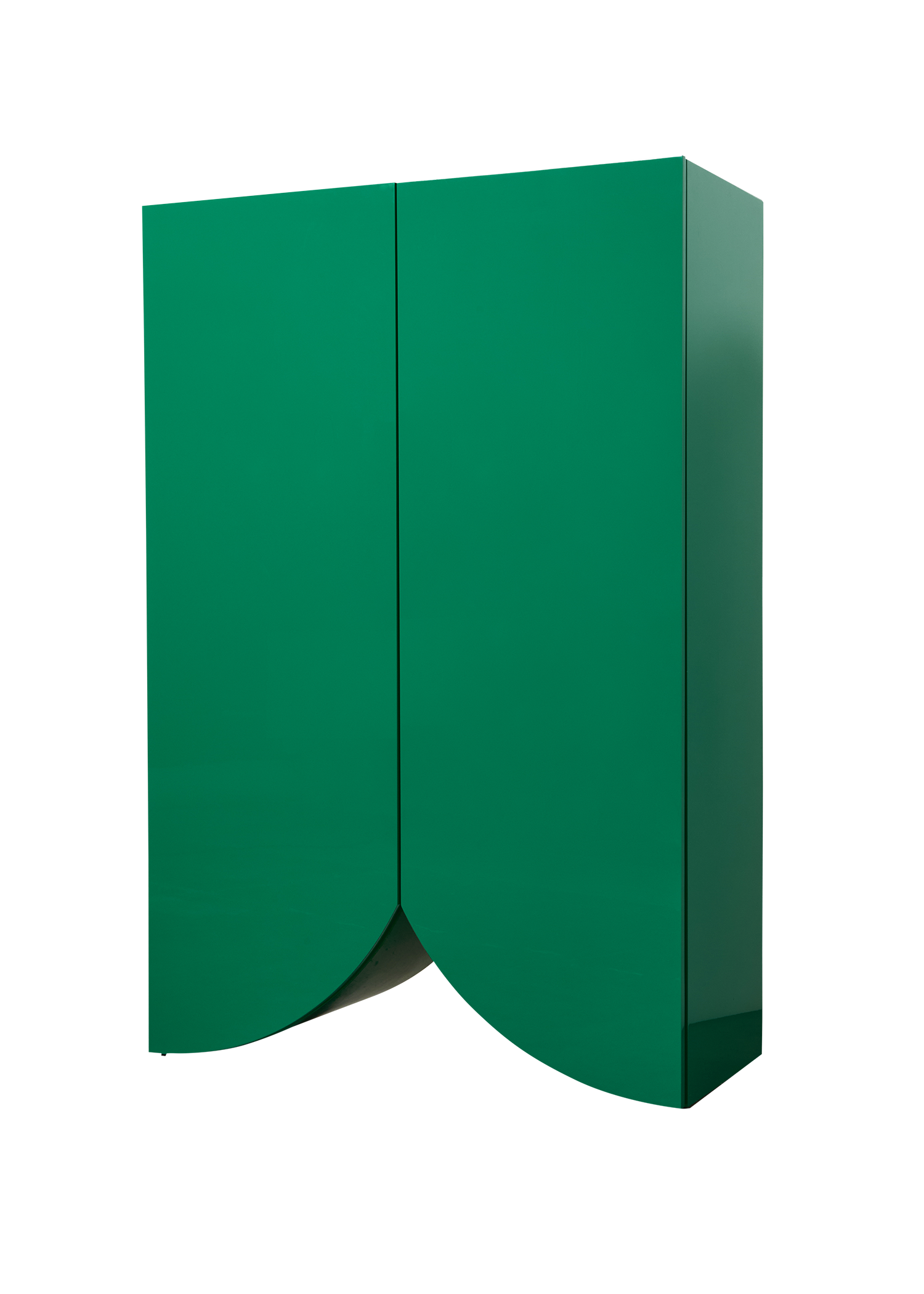 Disponible en plusieurs dimensions et finitions, le modèle se pare de couleurs intenses telles que le vert, le rouge, le bleu ou l’aubergine. Sa structure en MDF laqué brillant contraste avec un intérieur mat. Les portes à ouverture fluide et les détails soignés soulignent la qualité artisanale du meuble.