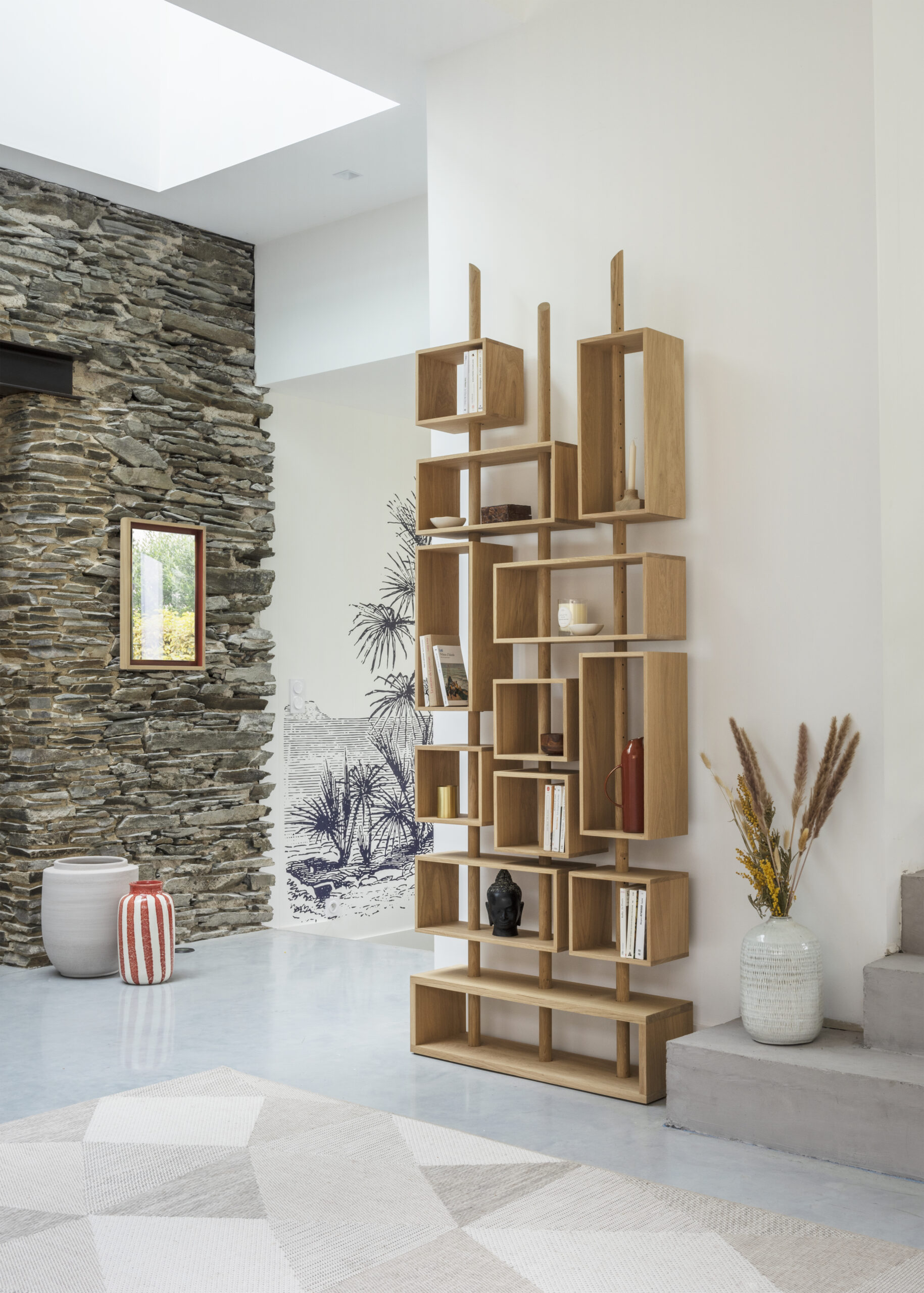 La bibliothèque 3 Mâts de Drugeot Labo s’inspire de l’élégance des voiliers. Elle se compose de trois mâts verticaux accueillant 11 éléments coulissants et 7 éléments pivotants, offrant une liberté totale d’agencement. Véritable meuble-sculpture, elle s’adapte à vos envies et met en valeur livres, objets et décorations.