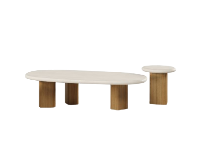 Le piètement en bois massif se marie avec un plateau disponible en Mortex, en céramique ou en bois, offrant des contrastes chaleureux et raffinés. Les matériaux dialoguent entre eux pour créer une pièce unique, capable de s’intégrer aussi bien dans un salon moderne que dans un intérieur plus traditionnel.