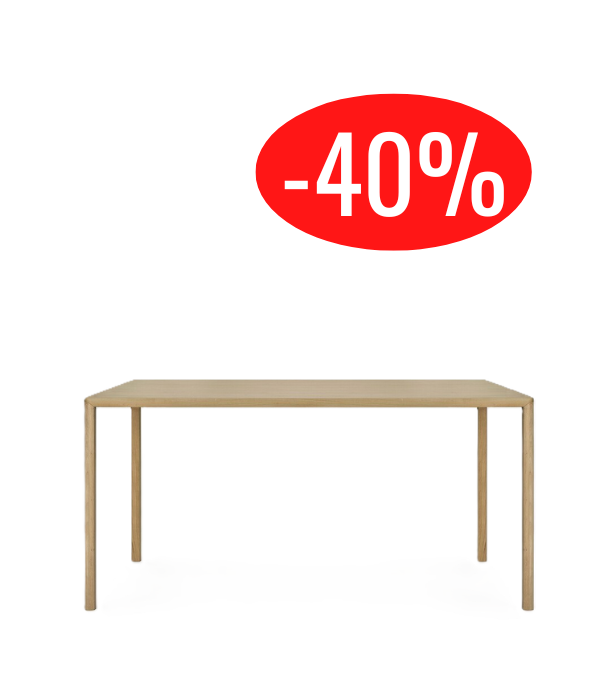 La table Air d’Ethnicraft séduit par son design minimaliste et sa légèreté visuelle. Son plateau en chêne massif verni et ses pieds biseautés lui donnent l’impression de flotter dans l’espace, apportant élégance et modernité à votre salle à manger.
