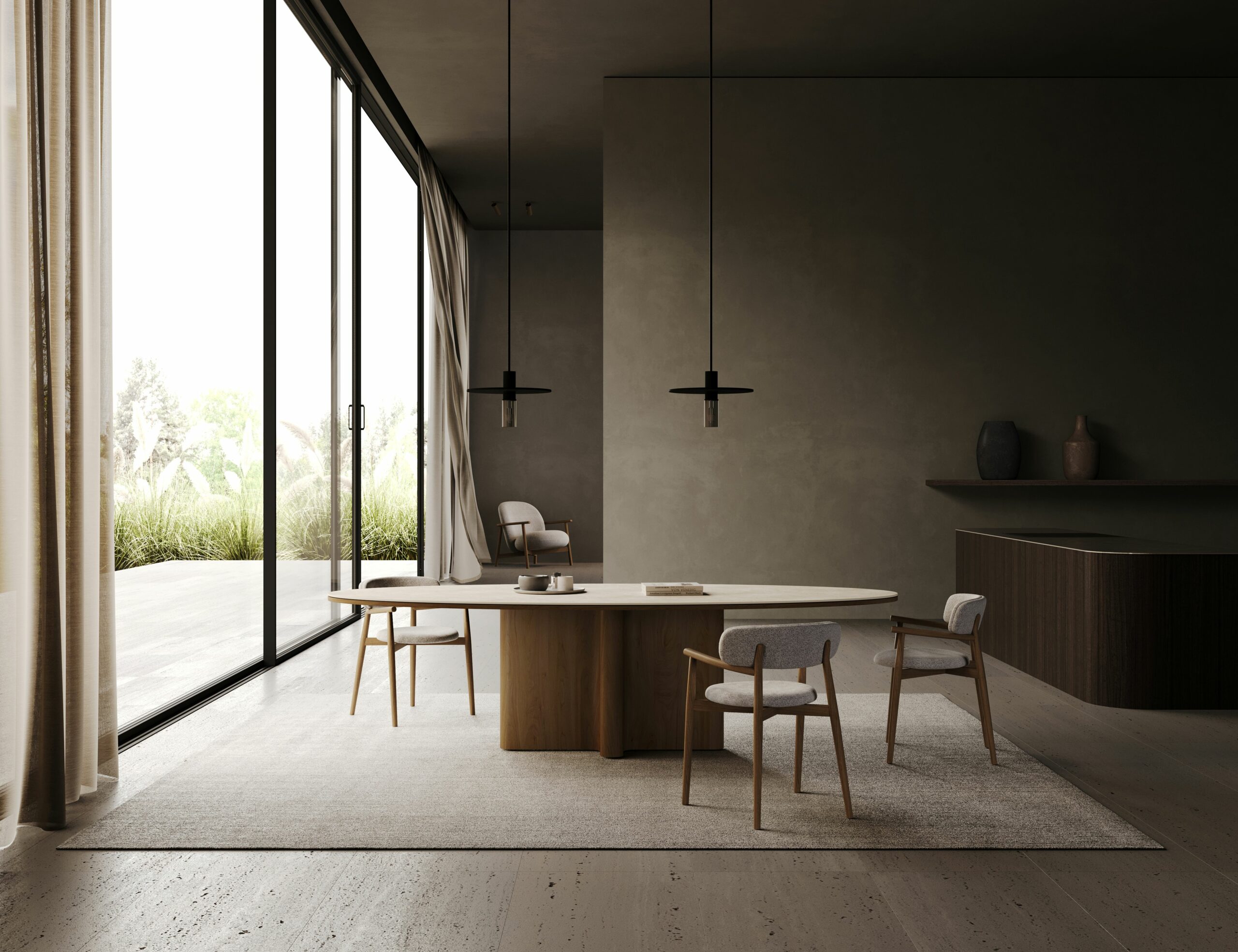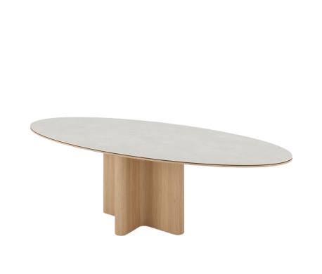 Le pied central en forme de « + » donne à la table Plus une allure aérienne tout en garantissant stabilité et équilibre. La table devient ainsi un élément central de votre salle à manger, un trait d’union entre fonctionnalité et esthétisme.