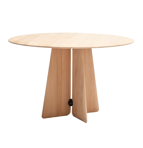 Son plateau rond favorise la convivialité, tandis que son piètement travaillé apporte une signature visuelle forte. Elle s’intègre aussi bien dans un intérieur contemporain que dans un espace plus classique, grâce à son équilibre entre modernité et naturel.
