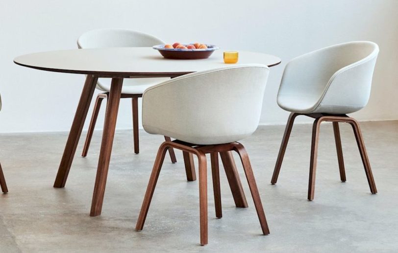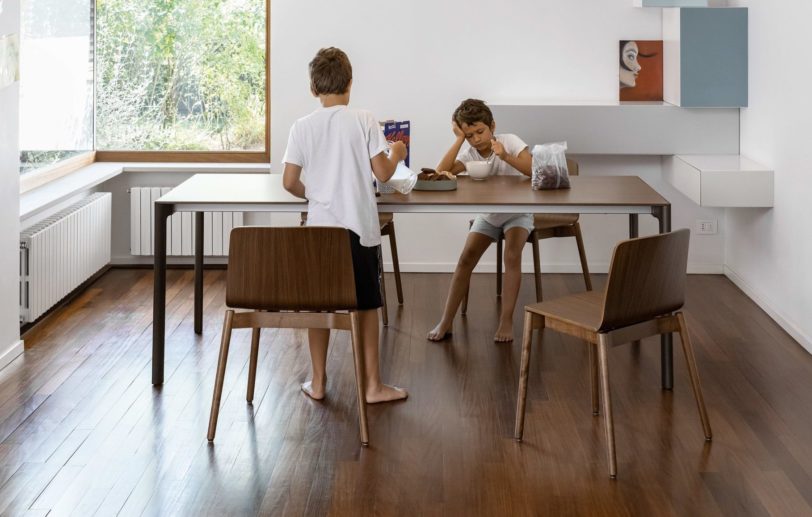 Bibliothèques, buffets, chaises, tables, le noyer s’invite partout en adoptant un design très actuel.